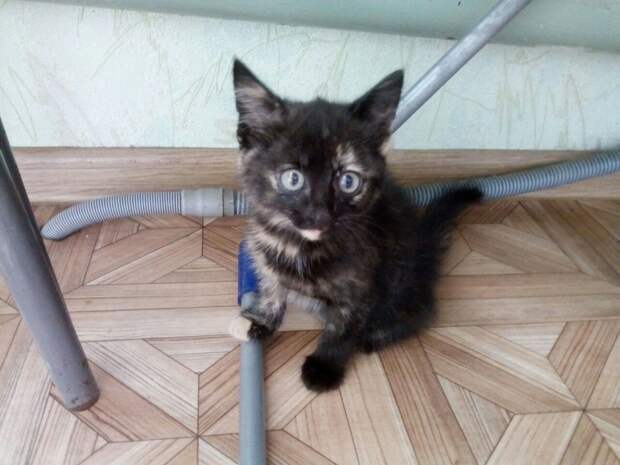 Обошли все близлежащие дома. Все говорили, что кричит не первый день и всем безразлично. Говорим: "Возьмите себе". "Есть уже одна - хватит" - ответ безразличных людишек. Нам, блин, имеющих огромную ораву (7 кошек и собака) оказалось одним не всё равно. Взяли домой.