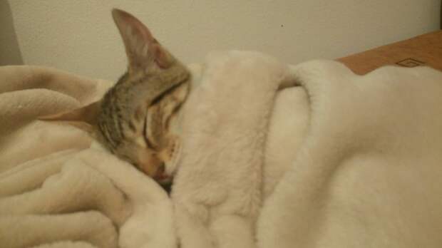 С тех пор Люси живёт с нами и очень любит будить нас по утрам.