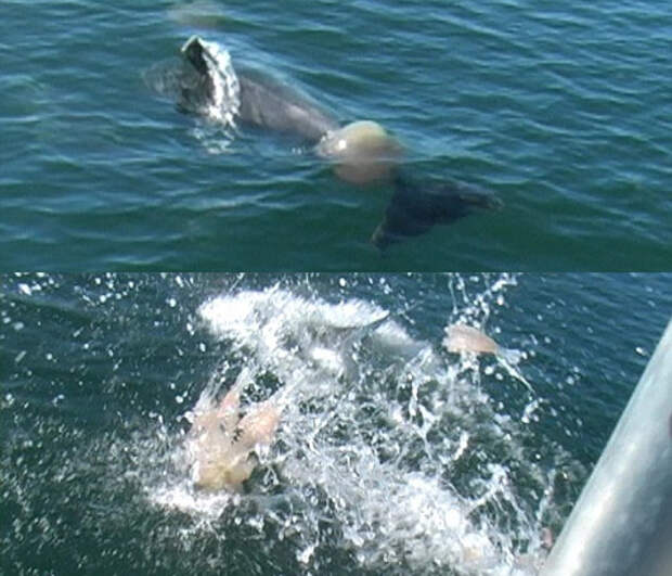 Биологи застали дельфинов за игрой в футбол медузами