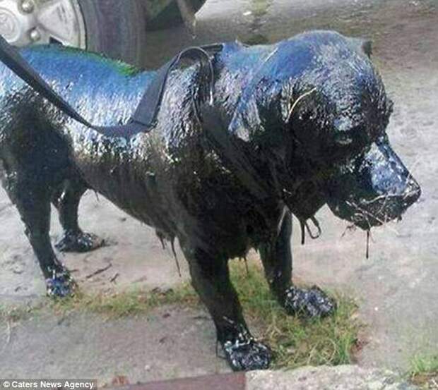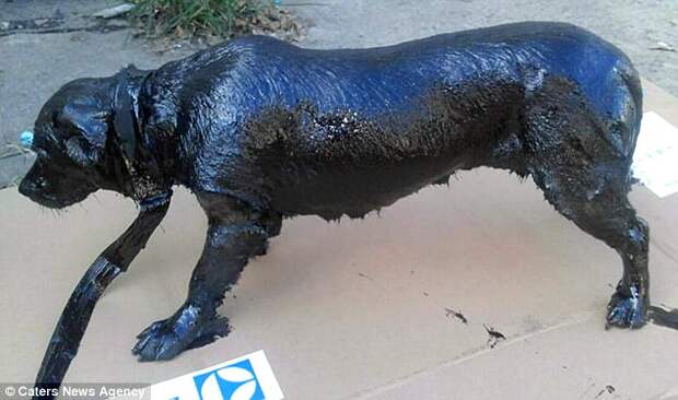 Ветеринары уверенны, что кто-то столкнул животное в бак со смолой, ведь самостоятельно так испачкаться оно не могло.