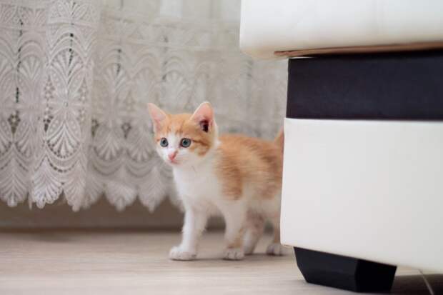 Это случилось 4 января 2016 года. Очень хорошо запомнила эту дату, так как у нас были билеты на театр кошек Куклачева, а я его ждала с октября. Идем мы домой, чтобы принарядиться перед концертом, а у нас лифт сломался. Пошли пешком, и слышим, как кто-то маленький пищит... Прибегаем на второй этаж, и там это рыженькое чудо! Так жалостливо пищал!