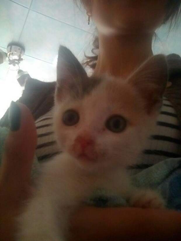 Мы увидели этот маленький беспомощный комочек осенним холодным утром. На улице под дождем она сидела совсем одна и была сильно простужена. Как оказалось позже у нее был острый ринит.