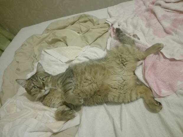 Первого взяли когда только-только поженились. Котёнок. Когда забирали — уверяли, что девочка. Девочка выросла в кота Пузякина.