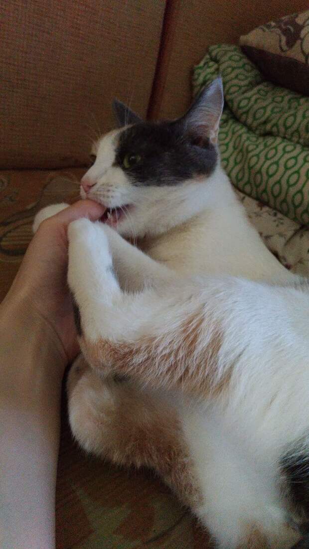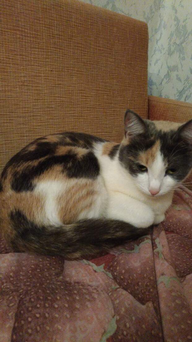 В пути несколько раз пыталась вырваться, мяукала хрипло, вырвалась вяло, но силы ее покидали и она засыпала, а затем, просыпаясь, снова пыталась. И так на протяжении всего пути домой (2 часа).