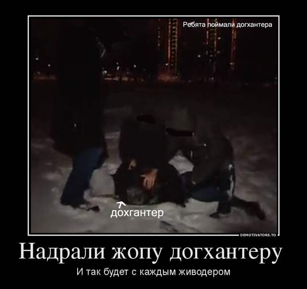 Конечно, убить догхантера никто не будет, однако не позавидуешь теперь догхантерам. Уничтожить догхантеров мечтают многие. Лично мы конечно против убийства и какой-либо жестокой расправы с этими пусть и нелюдями, да и анти-догхантеры никого убивать не собираются. Но тем догхантерам, которые встретятся на пути охотников на догхантеров явно не позавидуешь. Думаем, им придется как минимум взять больничный чтобы привести свои кости в порядок...